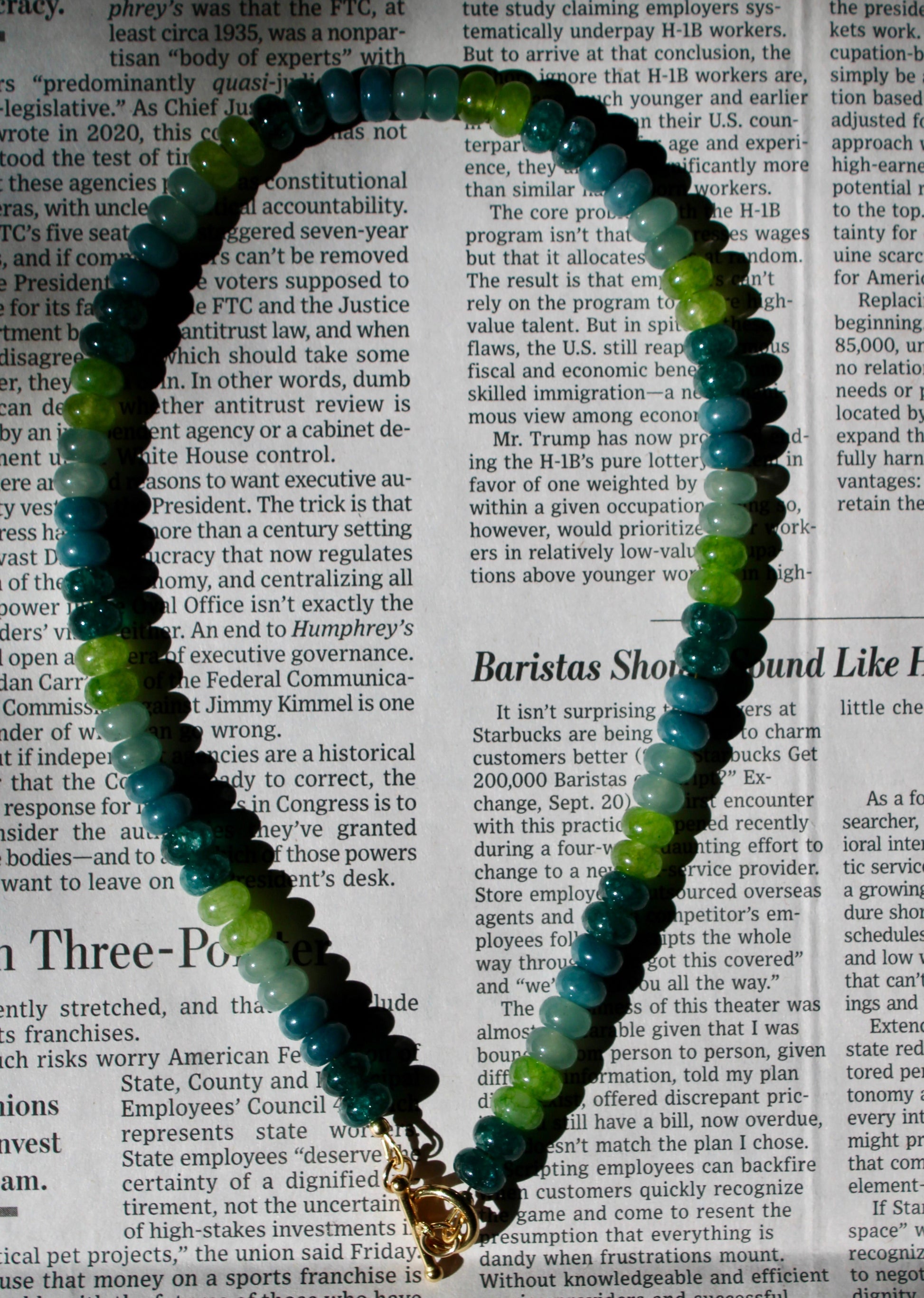 Our Kara Chalifoux gemstone necklaces are strung with juicy semi-precious stones—rich in color, weighty in the best way, and effortlessly luxe.
